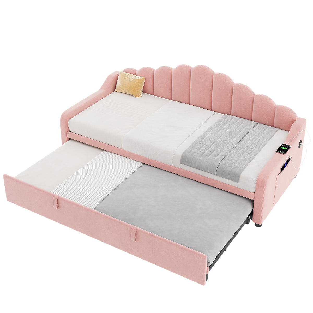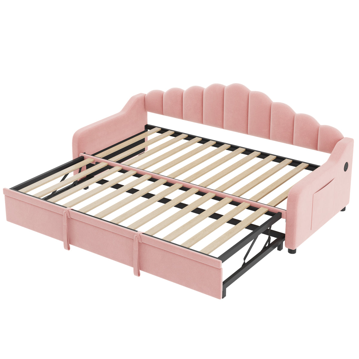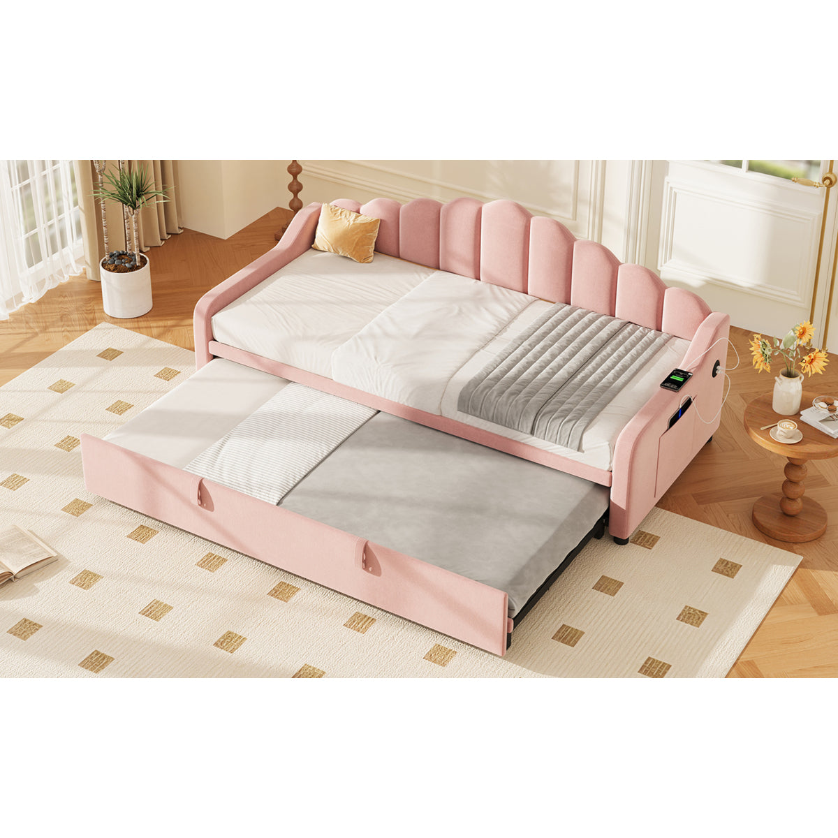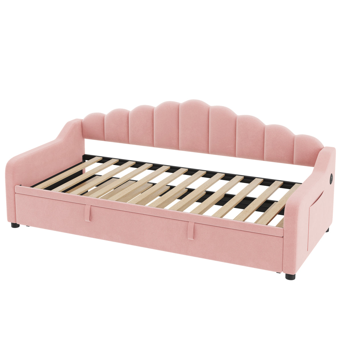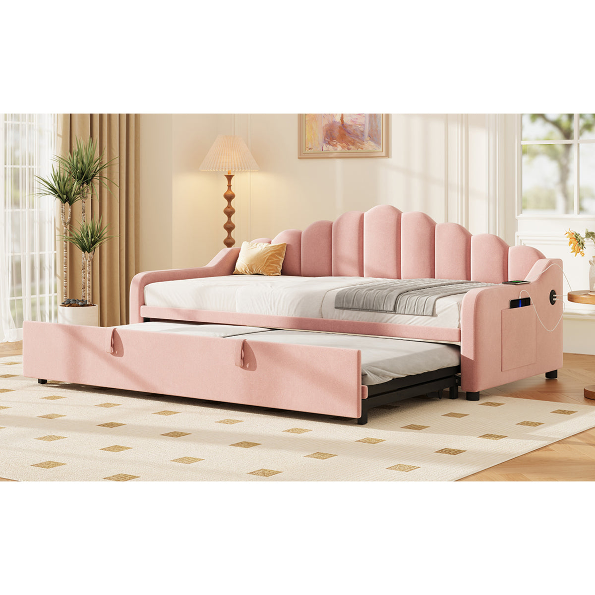 Audreamy Celeste Day Bed with Trundle Pink Velvet Single