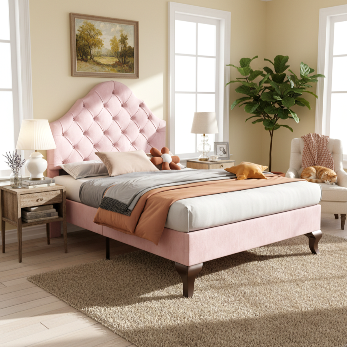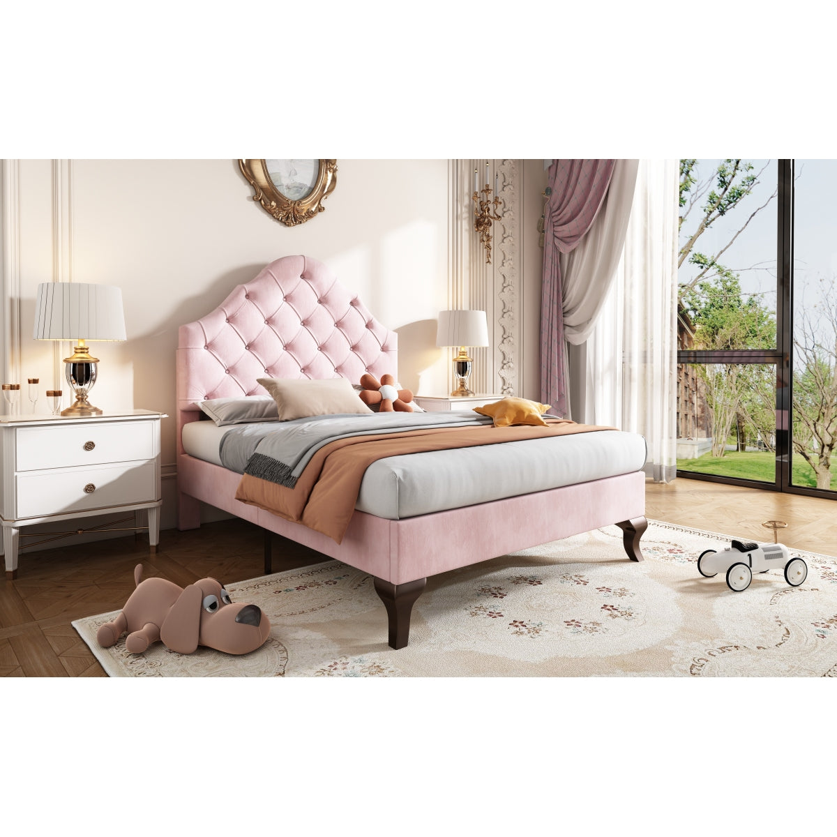 Audreamy Alden Bed Frame Pink Velvet Single