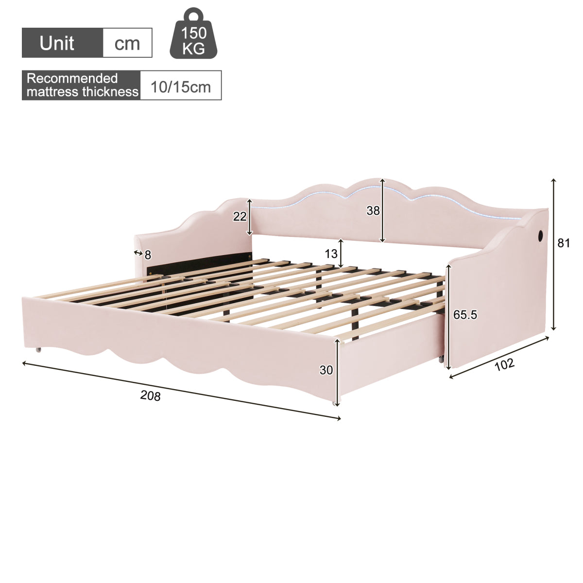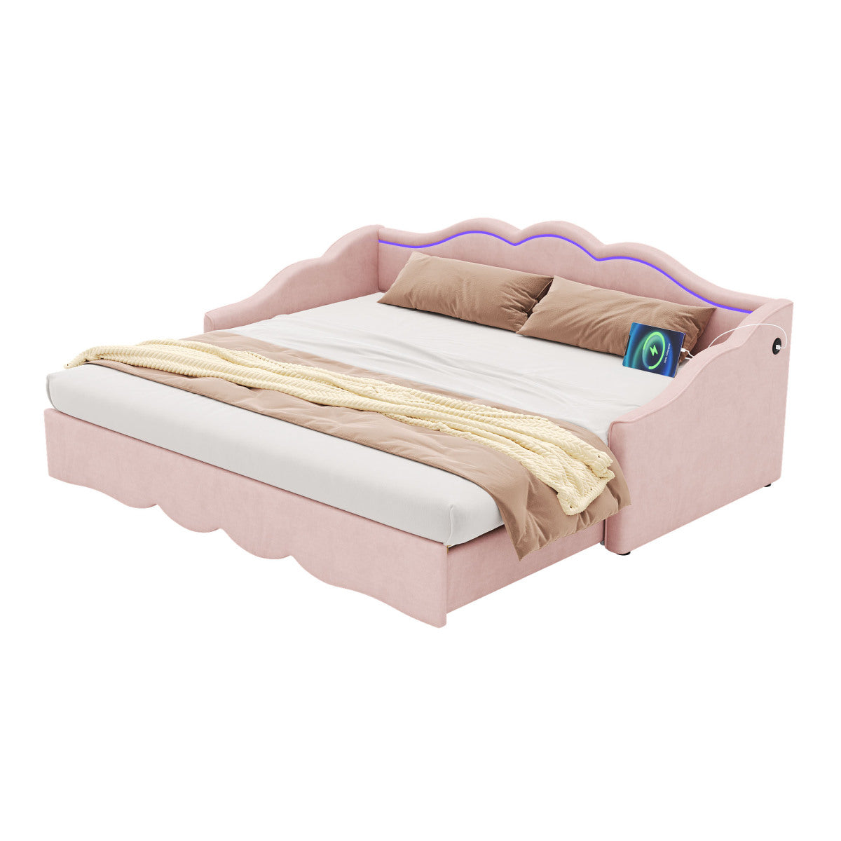 Upholstered Daybed, Sofa Bed, with LED Lighting and USB Port, pink Velvet is backordered and will ship as soon as it is back in stock.